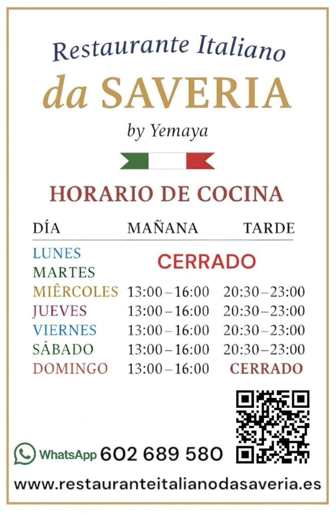 El restaurante Da Saveria, empezó su actividad desde el mes de febrero 2016, es un rincón gastronómico que te acerca a las especialidades culinarias más seductoras de la cocina italiana. Una oportunidad de sabores esenciales e internacionales que descubres en la malagueña calle Ancha del Carmen, frente a la Iglesia del Carmen. La pasta fresca y el producto italiano se ponen en manos expertas en esto de la elaboración casera de recetas de la cocina de Italia. ¿Vas a dejar que te lo cuenten?